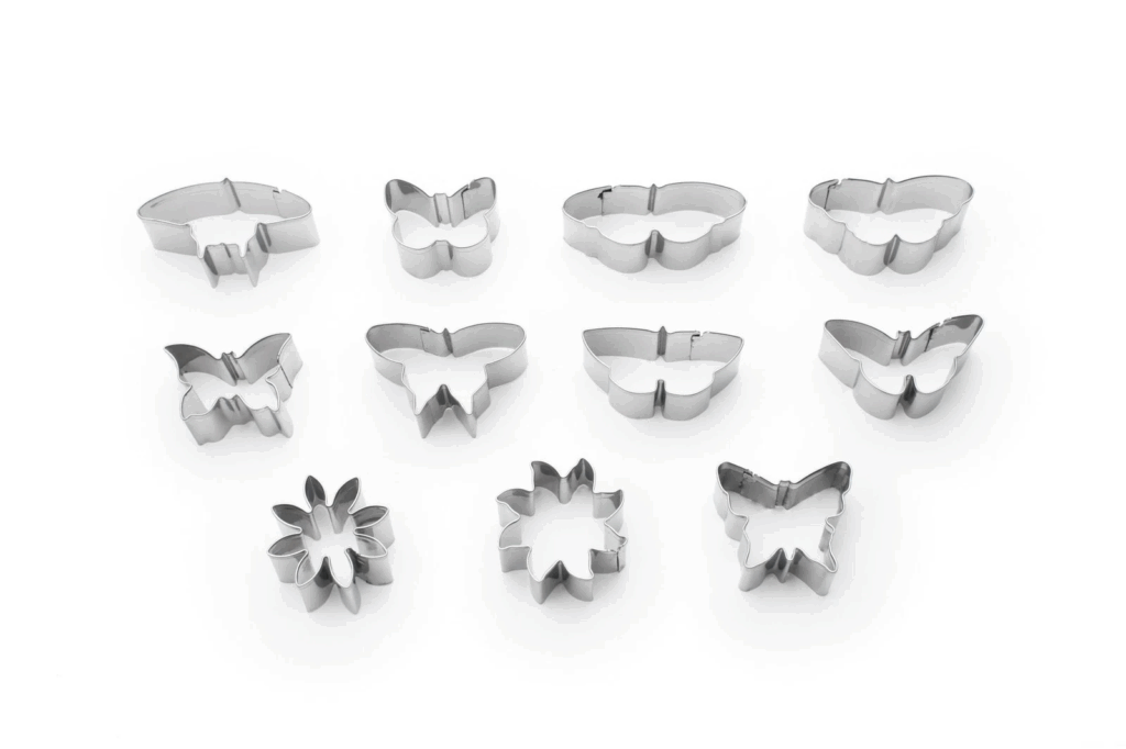 Spring collections often feel more complete with flowers and butterflies, and Fox Run has a set that fits that mood well. The Mini Flower and Butterfly Cookie Cutter Set includes 11 pieces, is made from tin-plated steel, and comes in a compact round metal container that collectors often enjoy keeping. Smaller cutters like these are especially handy for tea party cookies, petit fours, and layered spring dessert trays. A fair market value is around $12.