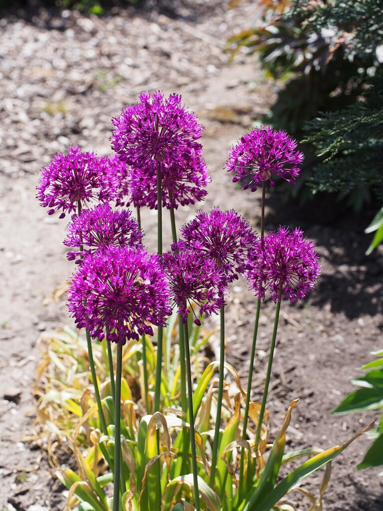 Ornamental alliums bring a neat look in spring because the flower stems rise cleanly and end in round blooms that look like little fireworks. Many types bloom in late spring, right when a lot of gardens need a punch of color. They love sun and well drained soil, and they do not need much else to perform. Because they come from bulbs, they also feel easy since you plant once and get a repeat show.