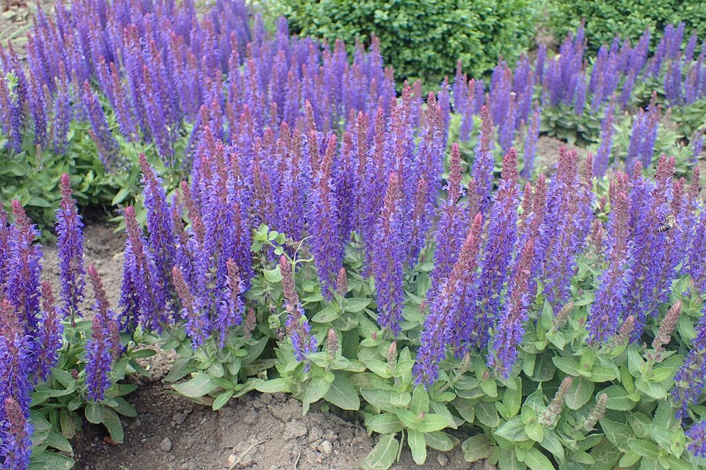 Salvia nemorosa grows upright and stays in a clean clump, so beds look organized without much effort. The flower spikes start in late spring and keep coming when you deadhead or do a quick trim. It loves full sun and does best in soil that does not stay soggy, which makes it a good match for many low water gardens. The foliage is lightly scented, and it keeps a nice structure even when flowers pause.