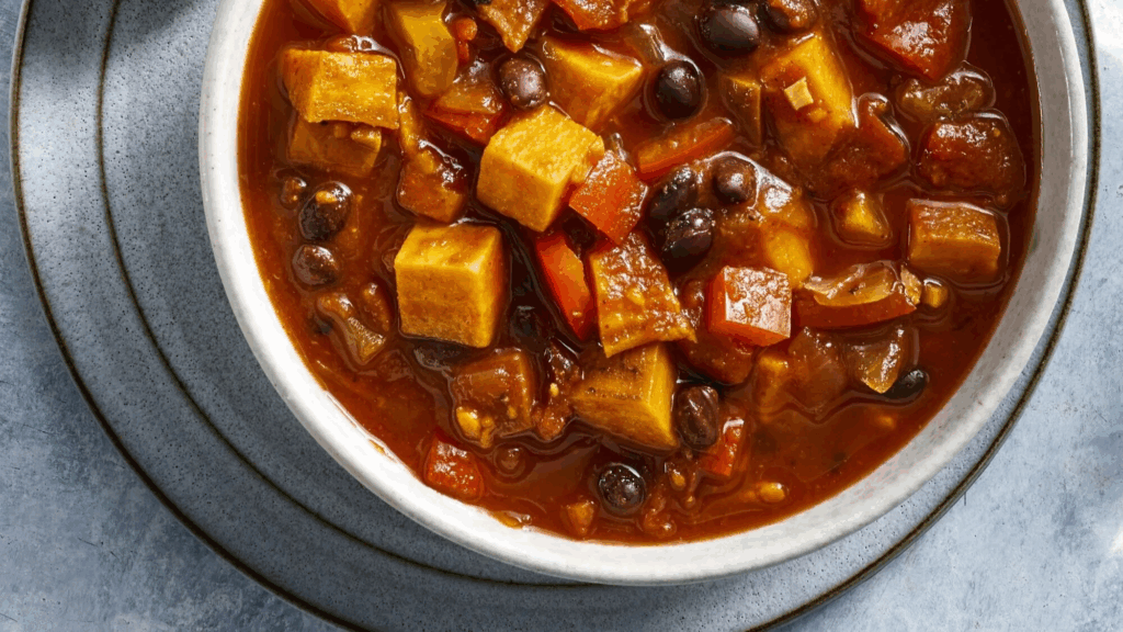 This squash and black bean chili takes about 1 hour to make. It is a hearty and filling meal, perfect for a cozy winter dinner. The combination of tender squash, black beans, and warming spices creates a flavorful dish that is both satisfying and nutritious. This chili is ideal for lunch or dinner, especially when served with cornbread. It is an easy-to-make dish that uses seasonal squash before winter fully sets in.