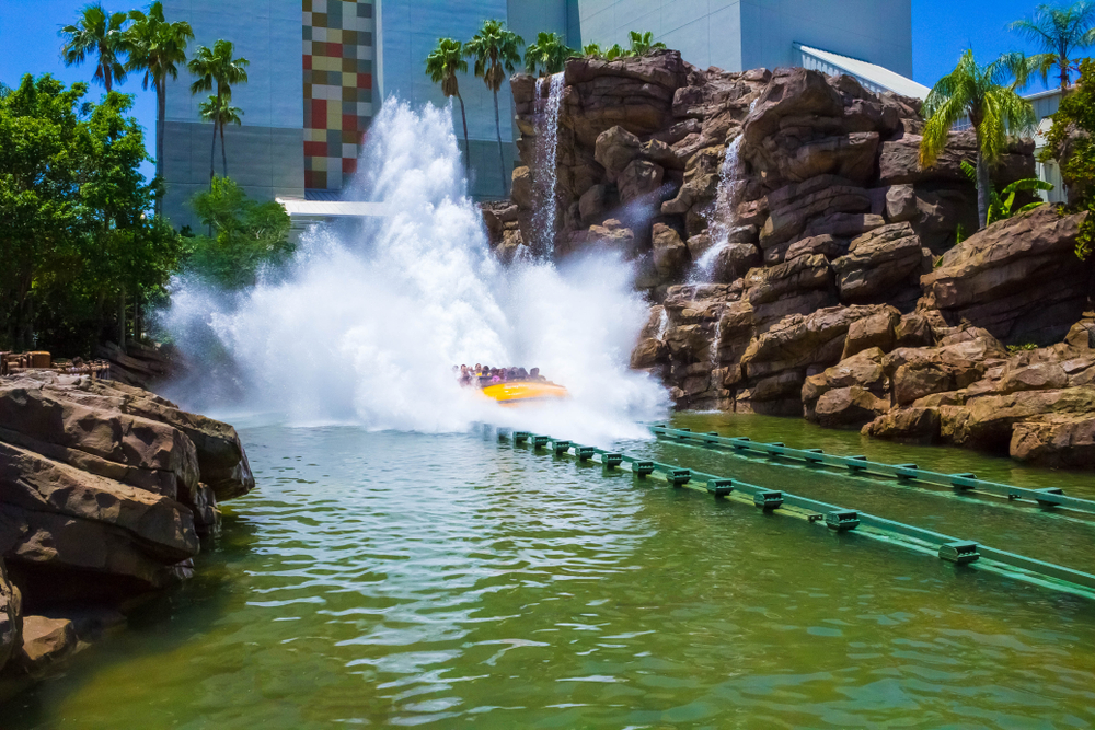 The ride’s combination of gentle river flow and sudden intense moments makes it appealing to both kids and adults. As the boat drifts through the park, visitors get a close-up look at the dinosaur exhibits, before the dramatic drop that leaves everyone soaked and surprised. The Jurassic Park theme adds to the excitement, making it feel like you’re truly part of the adventure. This ride continues to be a favorite for those seeking a mix of fun, thrills, and nostalgia.