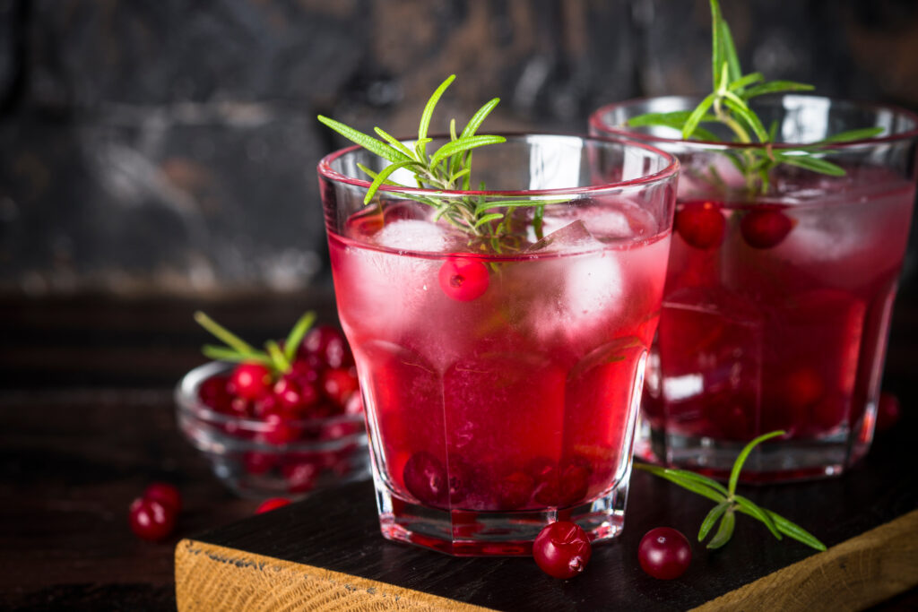 You’ll need 2 ounces vodka, 4 ounces cranberry juice, 2 ounces club soda, and ice cubes. Add frozen cranberries for decoration.
