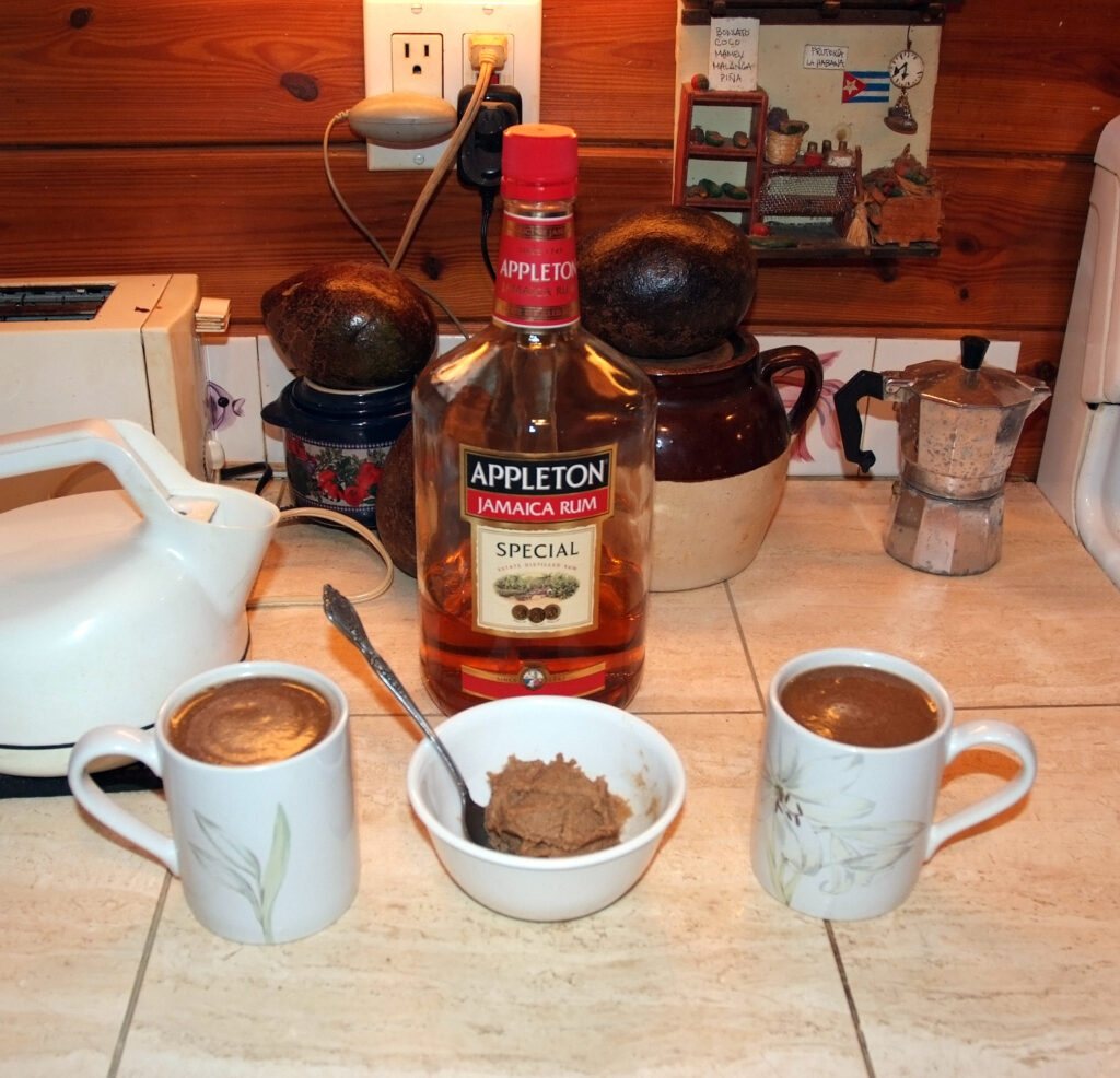 You’ll need 1 cup milk, 2 tablespoons cocoa powder, 1 tablespoon sugar, 1 ounce of Bailey’s or spiced rum, and whipped cream. Add ½ teaspoon cinnamon to the whipped topping.