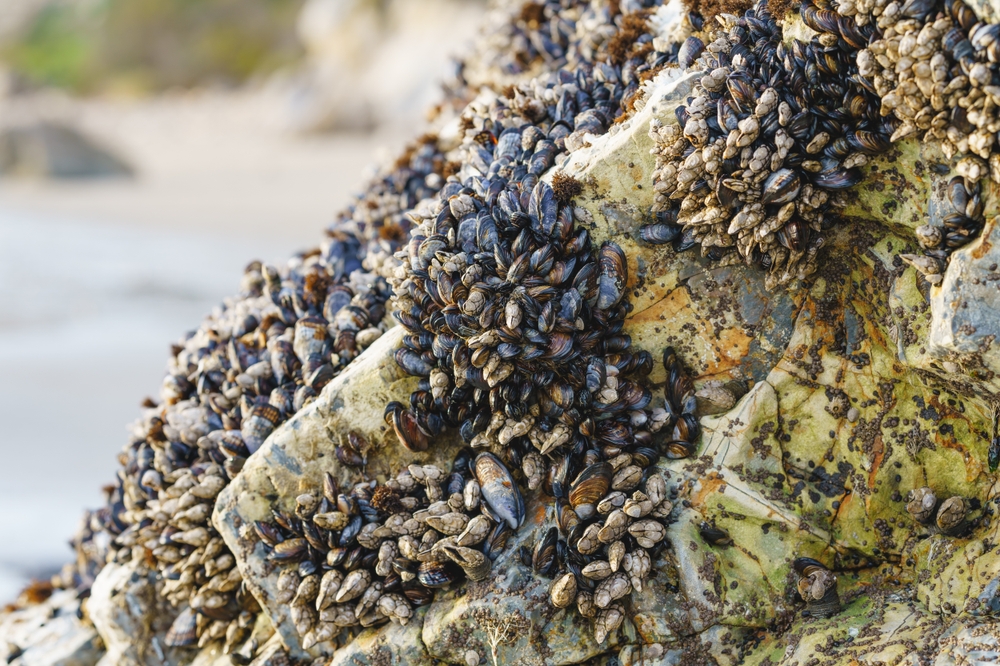From a distance, a mussel bed can look like one dark sheet spread over the rock. Looking closer reveals that many smaller animals live between the shells for shelter. A lower tide makes those crowded layers easier to see clearly. That is part of what makes mussel beds such an important part of tide pool life.