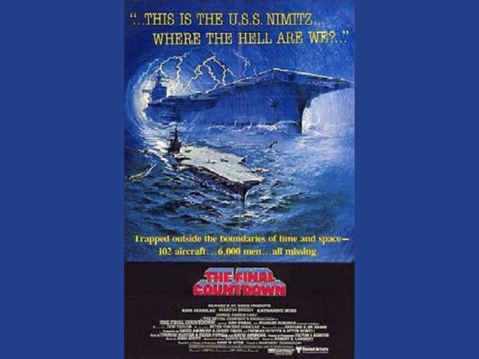 In The Final Countdown, the USS Nimitz, a modern aircraft carrier, is transported back in time to the day before the attack on Pearl Harbor. The crew must grapple with the decision of whether to interfere with history or let events unfold as they originally did.