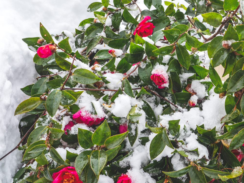 Camellias are evergreen shrubs that add a touch of elegance to the winter garden with their large, glossy green leaves and bright flowers. These plants are capable of blooming during the colder months, with their delicate flowers appearing in shades of pink, red, or white. The camellia’s ability to bloom in the winter months is thanks to its natural defenses against frost, including the production of sugars and other compounds that help protect the plant’s tissues from freezing. The flowers of the camellia are often surrounded by a backdrop of evergreen foliage, creating a striking contrast against the dull winter colors.