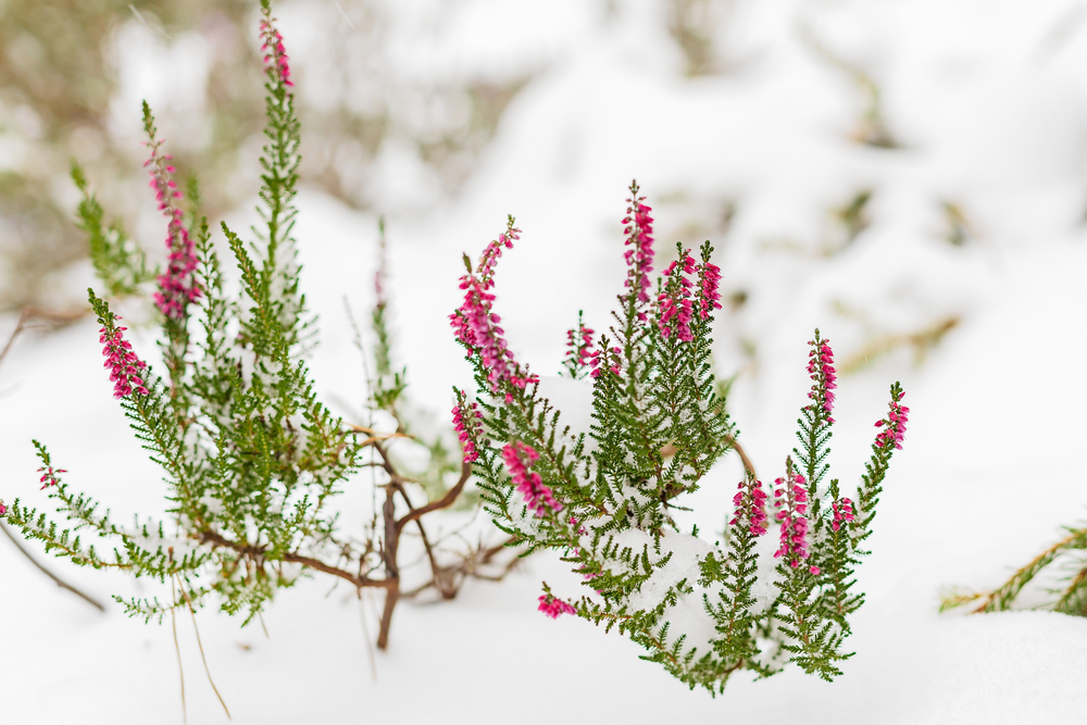 Heather is a small shrub known for its vibrant, purple or pink flowers that bloom during the winter months. This hardy plant thrives in poor soil and can withstand frost and snow, thanks to its natural antifreeze properties. Heather is an excellent choice for low-maintenance winter gardens, as it requires minimal care and can bloom for months during the colder months. Its ability to tolerate snow and frost while continuing to bloom makes it an essential plant for adding color to the winter landscape.