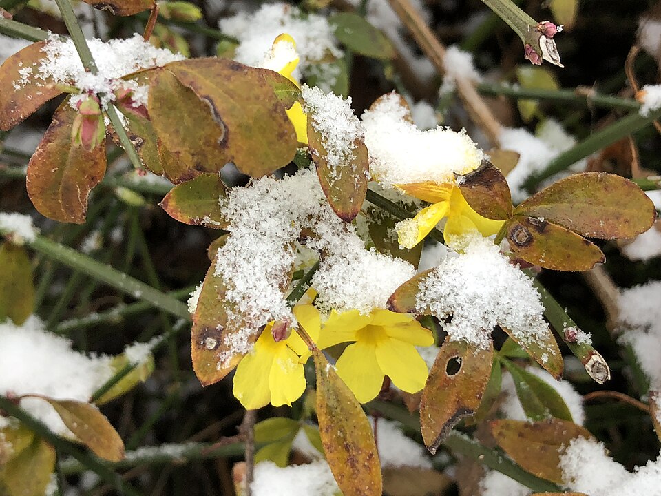 Winter jasmine is an incredibly hardy plant that defies the cold, with its bright yellow blooms appearing during the coldest months of the year. Unlike many plants that wait for spring to produce flowers, winter jasmine thrives when most of the landscape is dormant. The flowers bloom on bare stems, creating a brilliant contrast to the otherwise drab winter scenery. This plant’s ability to flower in such harsh conditions is due to the presence of sugars and proteins in its cells, which help prevent ice formation within the plant’s tissues, keeping the blooms intact through frost and snow.
