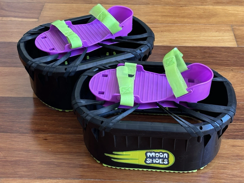 Children would often use these shoes for obstacle courses or pretend play, jumping from one spot to another. They offered a combination of exercise and entertainment, keeping kids active and engaged. The bouncy action and unique design made them a hit for several years. Current market prices for Moon Shoes range from $20 to $50, depending on the model and condition.