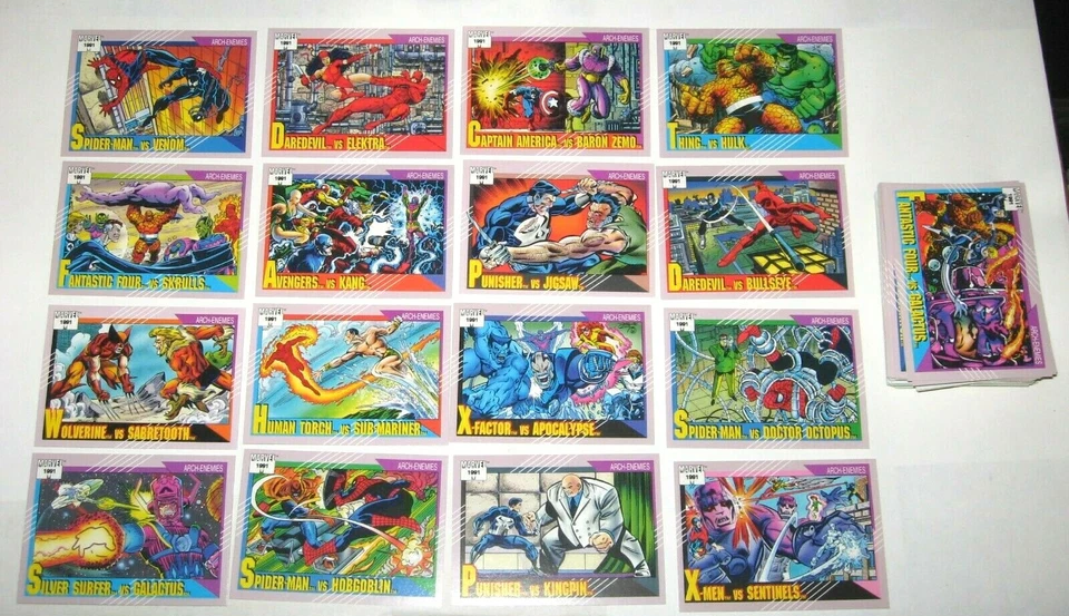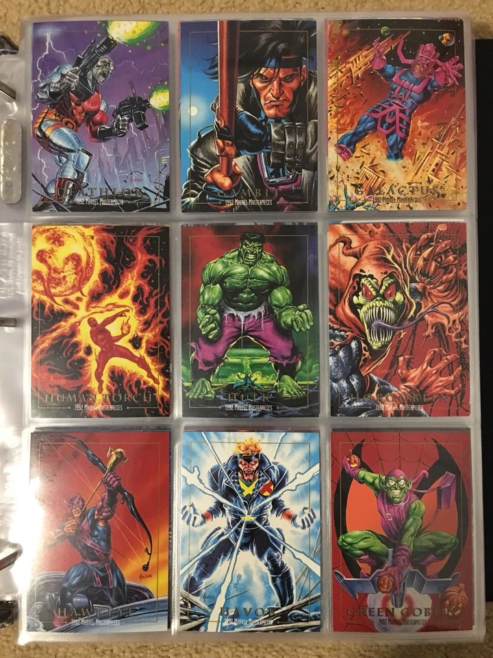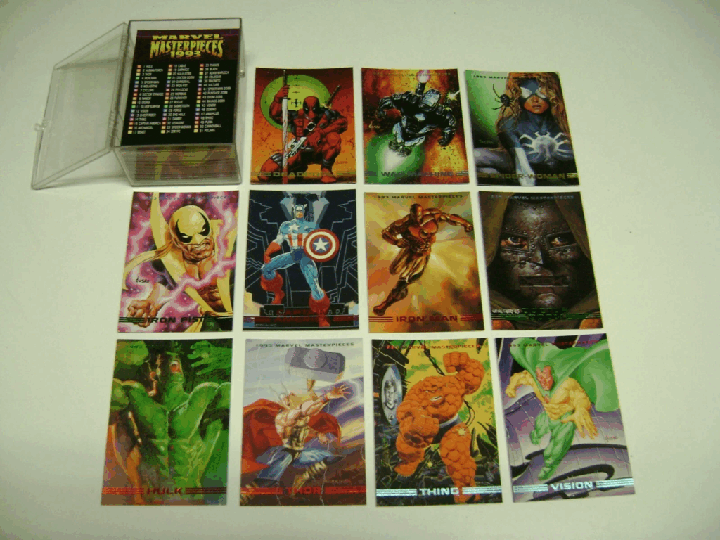 This set is especially famous for its high-quality, intricate illustrations that showcase the essence of each character. Fans appreciate the artistic depth, which remains one of the highlights of Marvel trading cards. The 1992 Masterpieces cards have a significant fan base, making them valuable for both casual and serious collectors. This set is often considered a centerpiece of any Marvel trading card collection. Its rarity and visual appeal continue to make it a fan favorite.