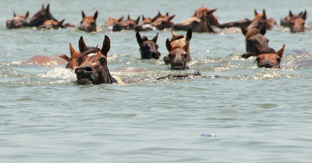 Chincoteague, a quiet island on the eastern shore of Virginia, is home to the famous Pony Penning Day, where wild ponies swim from Assateague Island to Chincoteague. This centuries-old tradition takes place every July and attracts visitors from across the country to witness the spectacle. Families can enjoy watching the ponies swim and then participate in the auction, where some of the ponies are sold to raise funds for the Chincoteague Volunteer Fire Company.