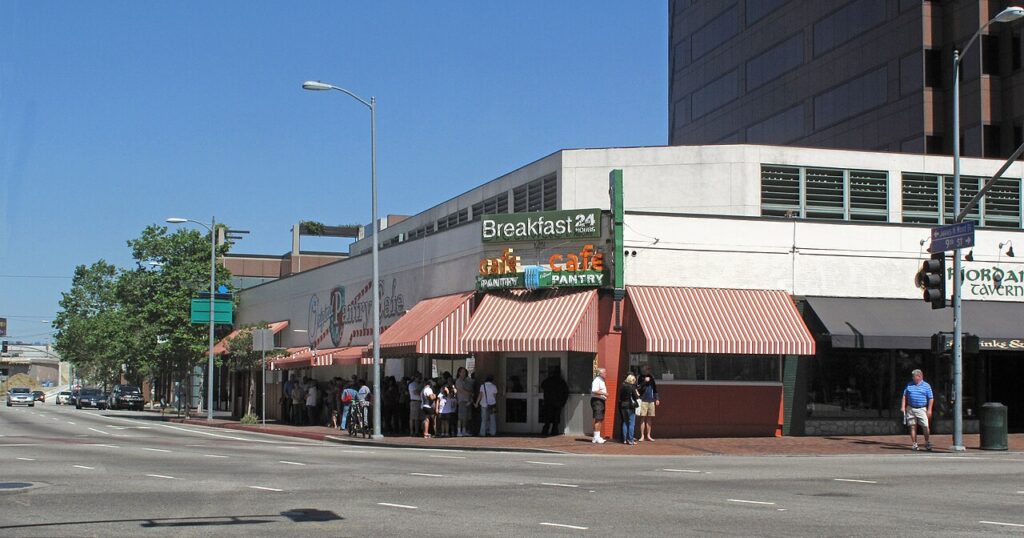 The Original Pantry Café, located in downtown Los Angeles, is a 24-hour diner that has been serving up hearty meals since 1924. Known for its classic American diner fare, including pancakes, steaks, and eggs, this diner has become a staple of the city’s dining culture. With its vintage décor and iconic counter seating, the Pantry Café offers an authentic diner experience that has been beloved by locals and visitors alike for nearly a century. It has witnessed decades of change in Los Angeles but remains a timeless spot for both the early riser and the late-night crowd.