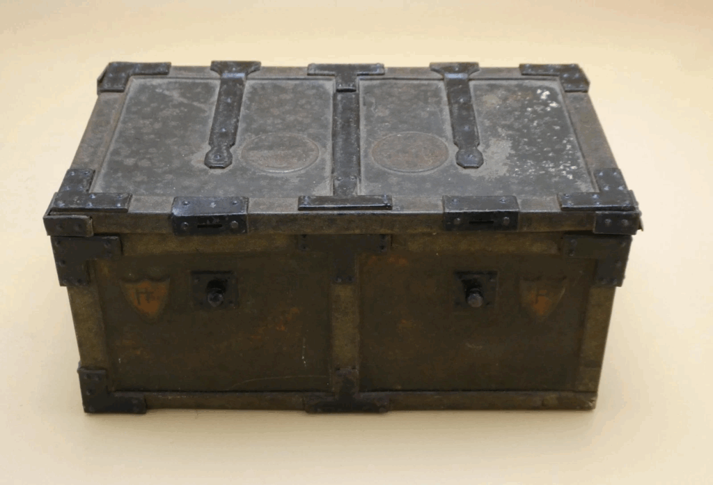 Released in the early 1900s, this Huntley and Palmers biscuit tin was designed to resemble a trunk. The lithographed tin features an intricate design, with a royal crest and vibrant colors that highlight the company’s prestigious image. It was created as a promotional item for Huntley and Palmers’ famous biscuits. A well-preserved tin can be worth anywhere from $100 to $800, with prices varying based on condition. Collectors are drawn to its rare shape and detailed imagery, making it a valuable find.