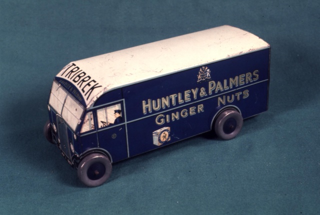 The Huntley and Palmers Ginger Nuts tin is a prime example of vintage food packaging from the early 20th century. The tin’s unusual shape, meant to resemble a delivery van, makes it particularly sought after. The playful design was meant to evoke a sense of fun, while the royal emblem emphasized the brand’s high quality. Today, these tins are collectible for both their rarity and their unique design. They represent an important piece of the history of British biscuit advertising.