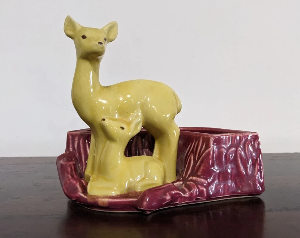 Vintage Fawn Planter – Yellow, Burgundy, and Gold