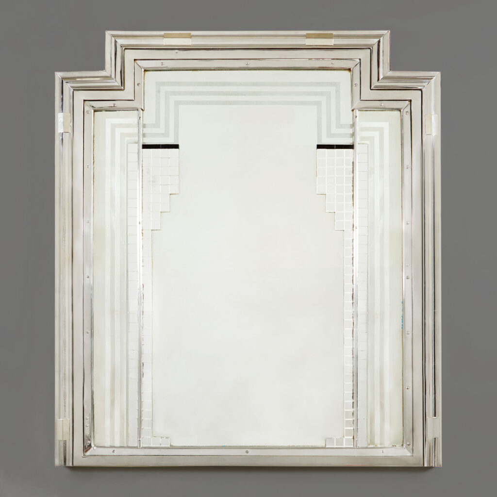 Art Deco Geometric Overmantel Mirror with Stepped Corners
