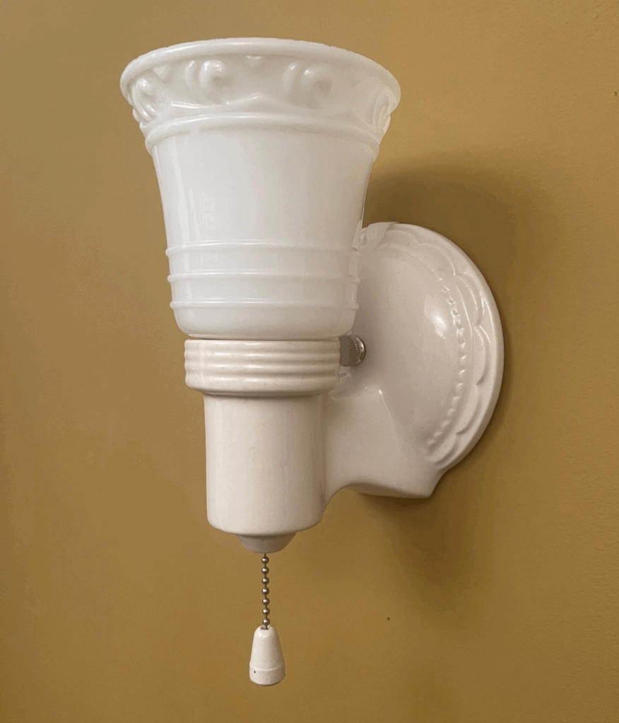Vintage Art Deco Wall Sconces with Porcelain Fixtures