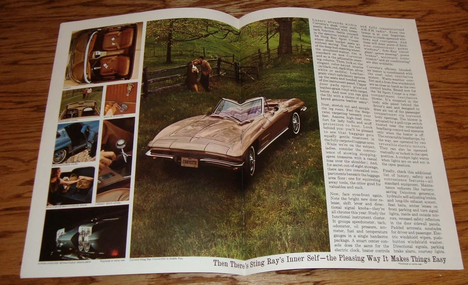 The 1964 Corvette Sting Ray brochure was produced by Chevrolet to show off this classic sports car’s features and styling. Because the Corvette has long held strong collector appeal, original brochures from its early years remain sought after. High-quality copies in good shape have been known to reach $90-$130.