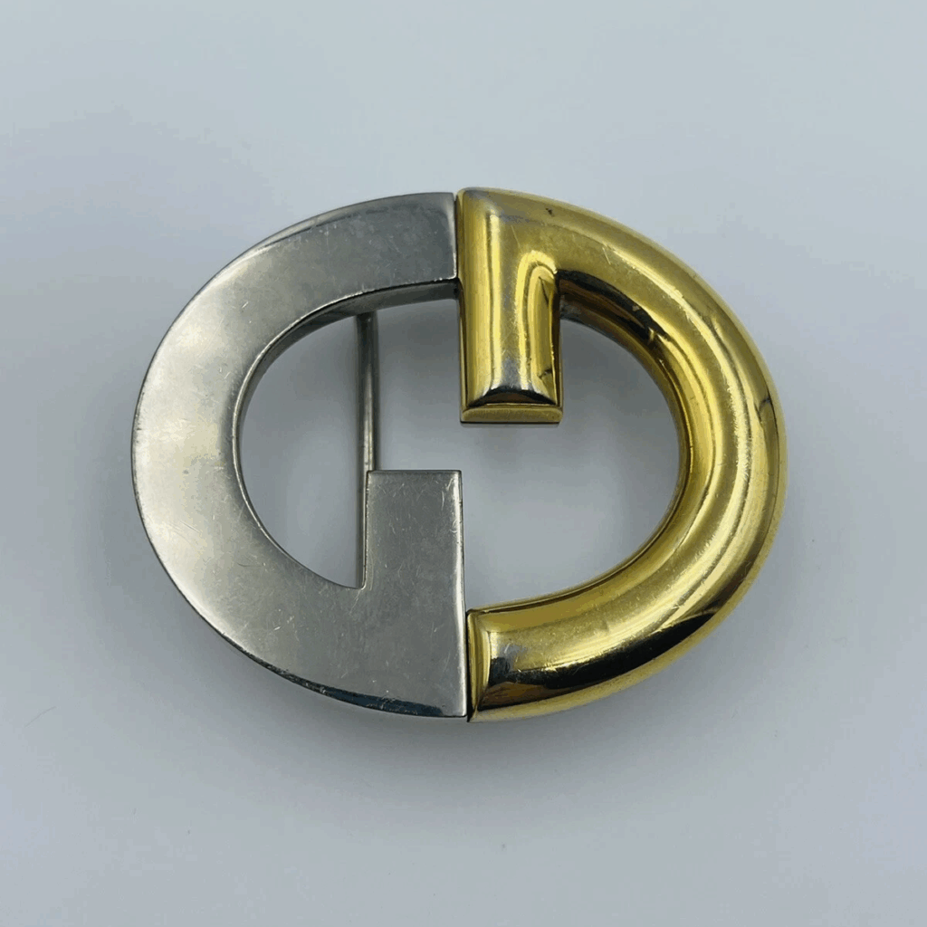 Produced around the 1980s by a luxury fashion brand, this buckle bears the company logo in gold-plate or vermeil finish, and sometimes a serial number. What makes it collectible is its brand heritage, limited production and crossover between fashion and accessory collecting. A recent value guide list put one example at $10,755 USD for fine condition. Evaluation should check for logo authenticity, correct serial number, original leather belt or packaging, and minimal wear of plating. Condition of the finish (no major peeling) is key.