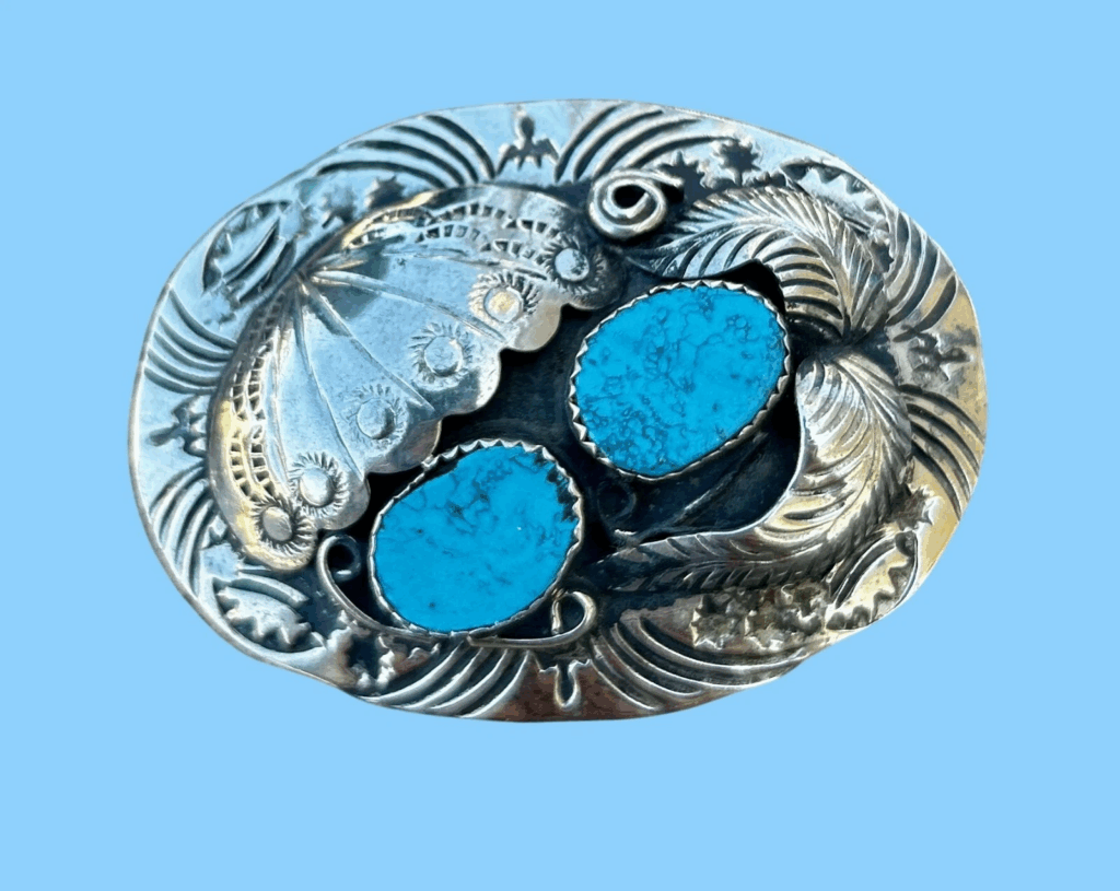 In the realm of vintage western accessories, these buckles appeal to both fashion and folk-art collectors. The combination of turquoise colour and native silver work creates strong visual impact. If the piece retains its original leather belt or buckle backing that may increase value. Because many mid-century buckles were cleaned or polished excessively, those with original finish may command a premium. When you find one with good provenance and style you might have a standout.
