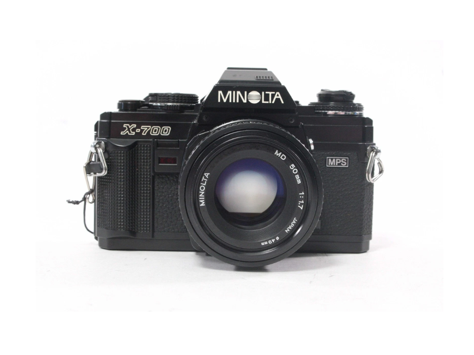 The Minolta X-700 is a versatile 35mm SLR camera that is highly regarded for its excellent build and user-friendly features. It offers full manual control while also including an automatic exposure mode, making it adaptable for various shooting situations. The MD 50mm f/1.7 lens is perfect for those who enjoy sharp, high-contrast images with beautiful bokeh.