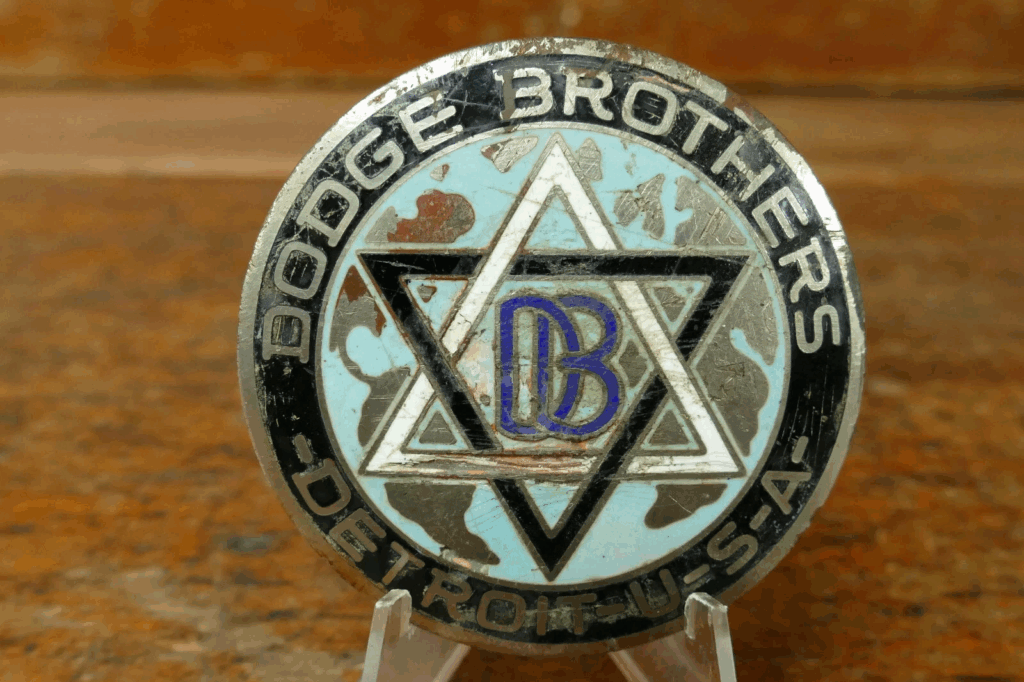 The Dodge Brothers emblem, introduced in the 1920s, was used on early Dodge vehicles and was known for its simplicity and boldness. The emblem often featured the Dodge brothers’ initials and was designed with clarity in mind, making it highly recognizable. For collectors, these emblems are highly valuable and can be worth between US$110-$150 in today’s market.