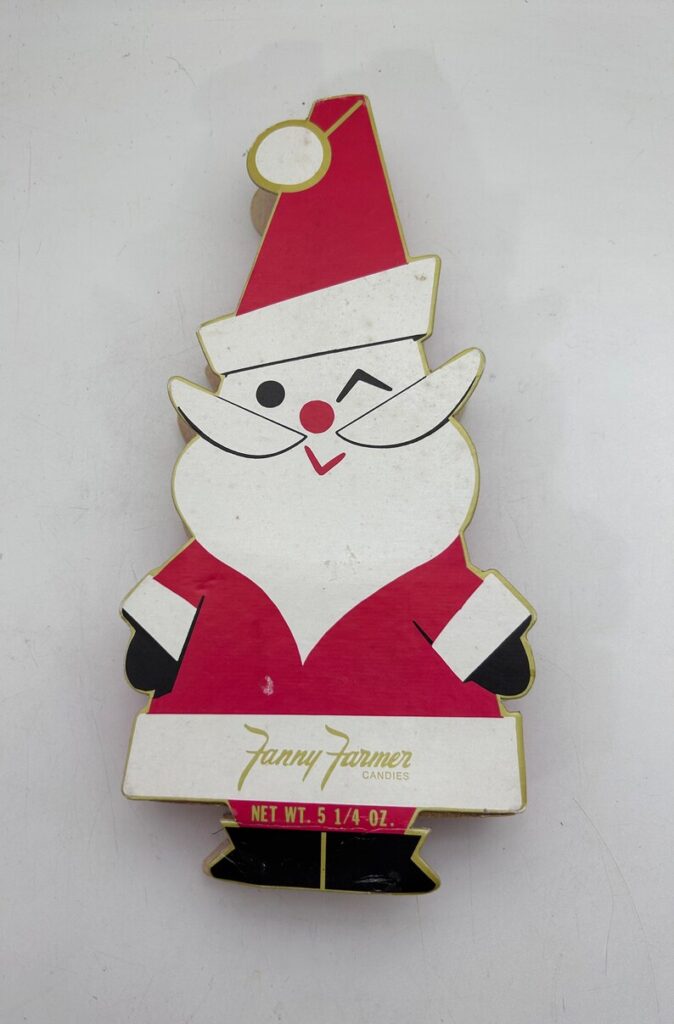 Fannie Farmer produced a Santa-shaped box for holiday chocolates in the 1940s that has since become a holiday collectible. The feature that elevates the box value is the shape-design and seasonal artwork which makes it attractive as décor as much as a container. Because most holiday chocolate boxes were discarded after use, intact and original Santa-shaped items have greater value than the sweets they once held. A strong example might fetch US$150 to US$300 in today’s market. The box appeals to collectors of holiday packaging and vintage candy memorabilia.