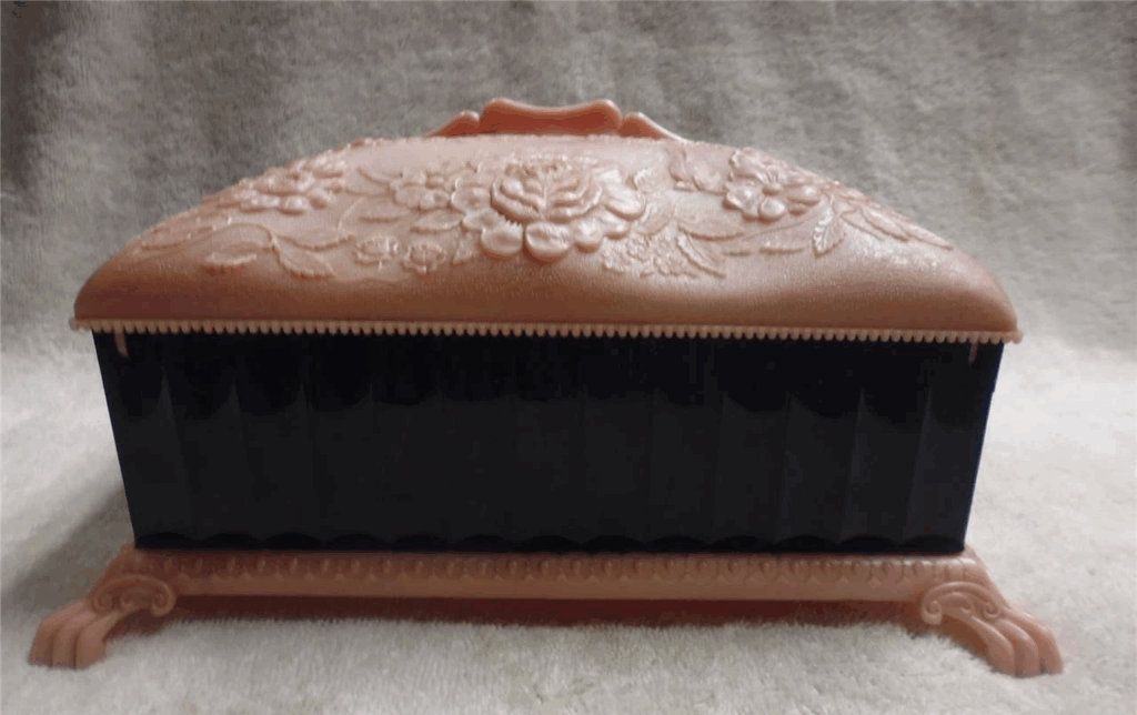 Because many of these boxes were repurposed as trinket boxes the original label or insert may be missing, reducing value. Condition of the velvet, intact embossing, minimal fading, and original interior liner all matter. If the hinged lid still functions and the box retains original shape it stands out. For someone interested in vintage Valentine’s ephemera or chocolate collectibles this box is a strong candidate. Its appeal comes from the packaging design rather than the confection inside.