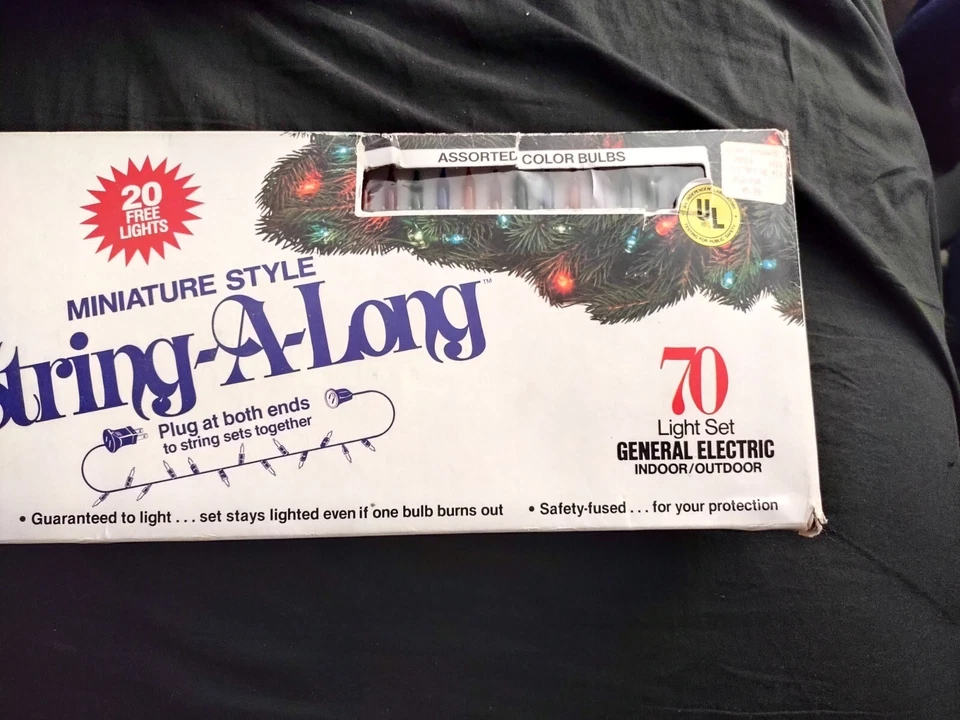 Starting in the late 1970s and continuing through the 1990s, GE sold String-A-Long mini light sets that many people remember from childhood. The old holiday charm comes from the tiny bulbs and the simple, classic look on a tree. A fair market estimate for a sealed vintage box is around $15 to $30. These sets are easy to find, which makes them a fun entry point for collecting. They also work well for wrapping around garlands and stair rails.