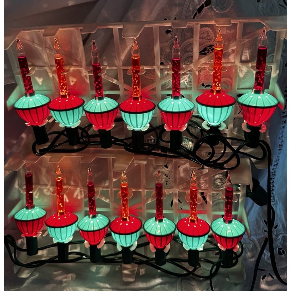 These look especially nice on a small tabletop tree where you can see the bubbles clearly. Collectors like sets that still have their clips and original box inserts. If the bubbles move slowly or unevenly, it can still be normal depending on the bulb. They also photograph well, which makes them popular for holiday decorating posts. A strand or two can instantly give a room that familiar winter glow.