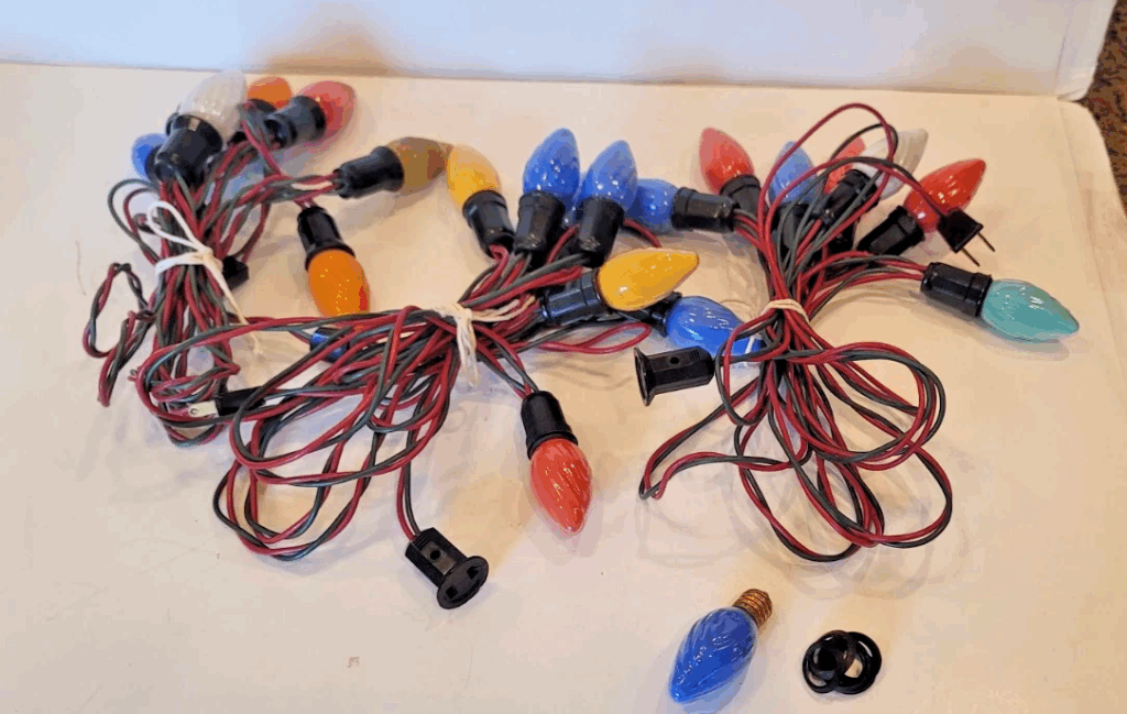 These strands often look best when they are draped loosely instead of wound tightly. People also like them for aluminum trees, since the spacing helps each bulb stand out. You will want to check for original clips or sockets if you are buying one secondhand. If the strand comes with its box and inserts, it tends to sell faster. For display, even a non-working strand can still feel special when the packaging is kept.