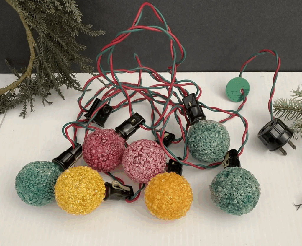 Because these were made to last, you will sometimes see sets that still look surprisingly sturdy. The box condition can matter almost as much as the lights, since many people display the packaging. If the bulbs are missing, the value drops, but the Bakelite pieces still keep it collectible. This style looks great wrapped around a small tabletop tree or greenery. If you do plug a vintage strand in, many collectors prefer careful, limited use to reduce risk.