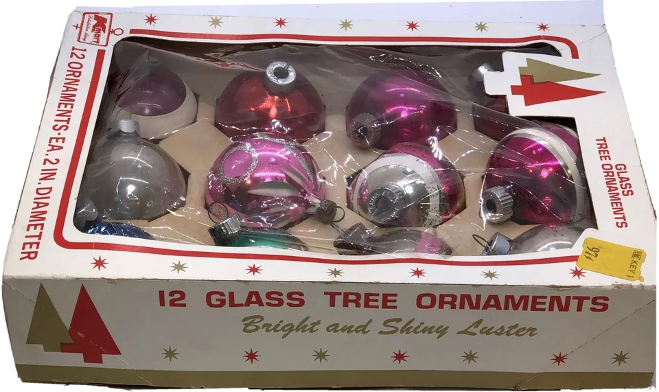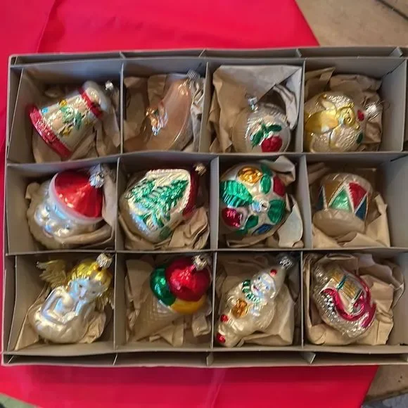 Boxed sets of glass ornaments from the 1940s to the 1960s are highly collectible, especially when they include original packaging. These sets often come with a variety of ornaments, such as spheres, teardrops, and icicles, offering collectors a well-rounded sample of mid-century Christmas decor. A complete set in good condition can sell for anywhere from $50 to $200, with rare sets fetching more. The value is significantly higher when the original box is intact and well-preserved.