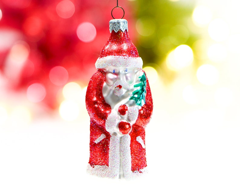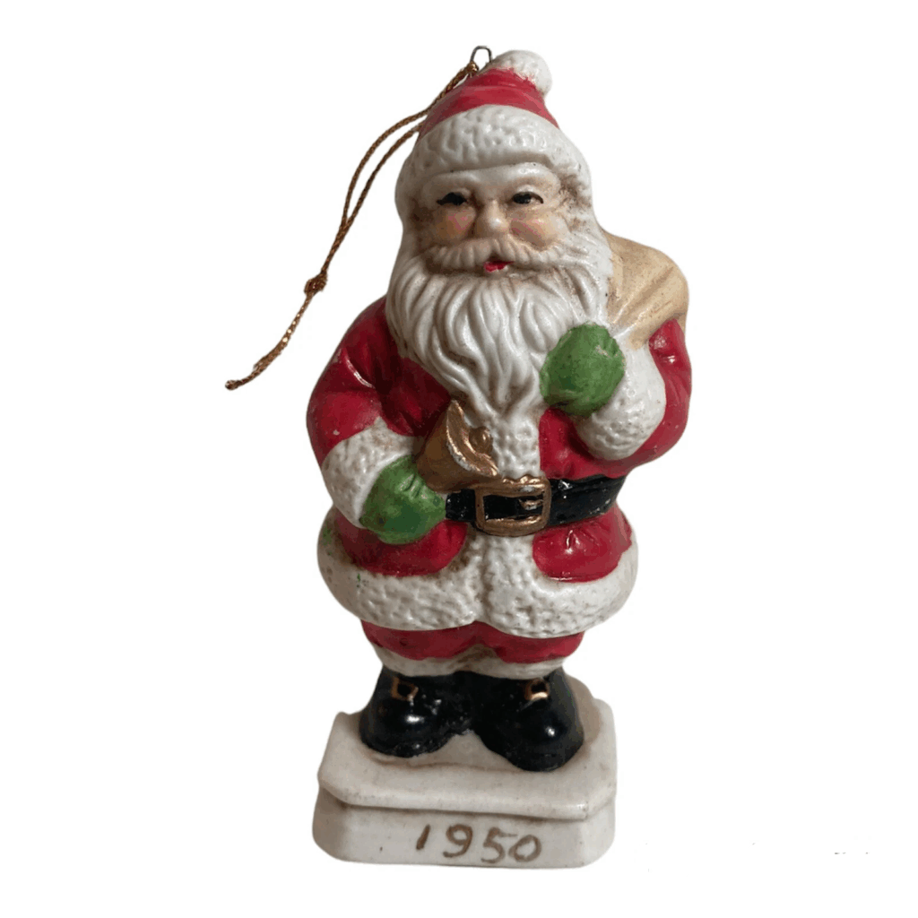 Vintage Santa figurine ornaments, especially those made in the 1950s and 1960s, are cherished for their whimsical and nostalgic appeal. These ornaments often feature a jolly Santa in various poses, from carrying a sack of gifts to waving or sitting. Depending on condition, Santa ornaments can range in price from $20 to $100, with more elaborate or rare versions commanding higher prices. Those with hand-painted details or made from unique materials like porcelain are especially valuable.