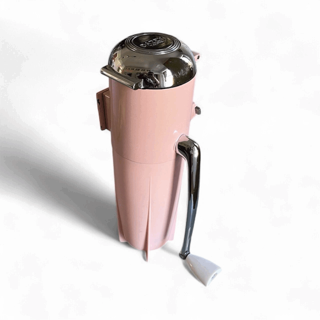 This ice crusher was designed to make the process of crushing ice quick and easy, an ideal tool for hosting gatherings. The chrome body ensures durability, while the Bakelite handle provides a comfortable, secure grip. The combination of these materials also gives the ice crusher a distinctive look that appeals to collectors. Many collectors appreciate its functionality and nostalgic value, especially when it remains in working condition. These ice crushers are a classic example of mid-century kitchen gadgets that combine practicality with style.
