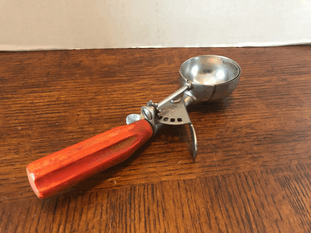Introduced in the 1950s, this ice cream scoop became a popular choice in many kitchens for its functionality and style. The scoop featured a chrome head and a colorful Bakelite handle, which made it both practical and aesthetically pleasing. Collectors love this item for its design, which reflects the mid-century era, with prices ranging from $40 to $100 depending on its condition.