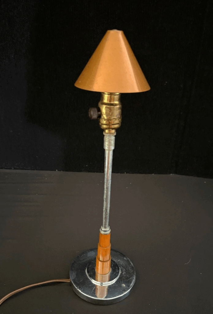 The best feature of this lamp is its striking architectural design, with clean lines and layered details. The Bakelite base gives it a touch of warmth, while the chrome provides a sleek, polished contrast. Its size makes it ideal for desks, tables, or nightstands. With its durability and timeless appeal, this lamp has become an iconic piece from the Art Deco period. Its market value continues to grow due to its scarcity and craftsmanship.