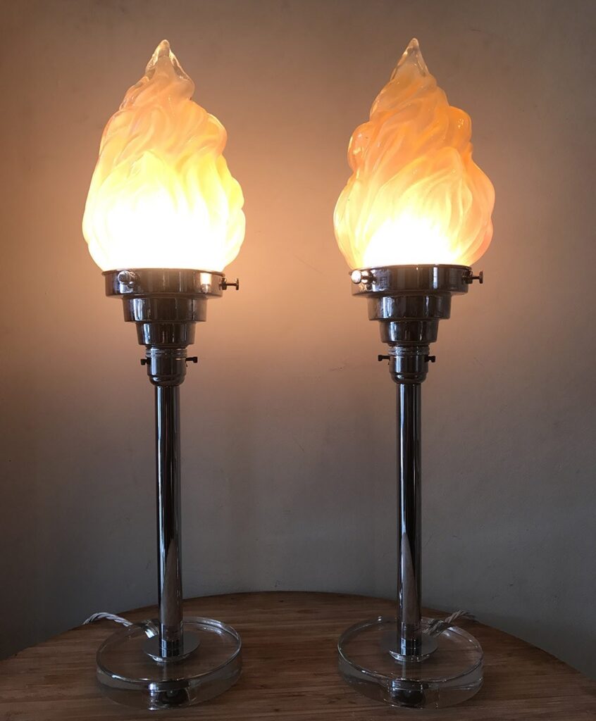 Art Deco Chrome and Bakelite Flame Table Lamp