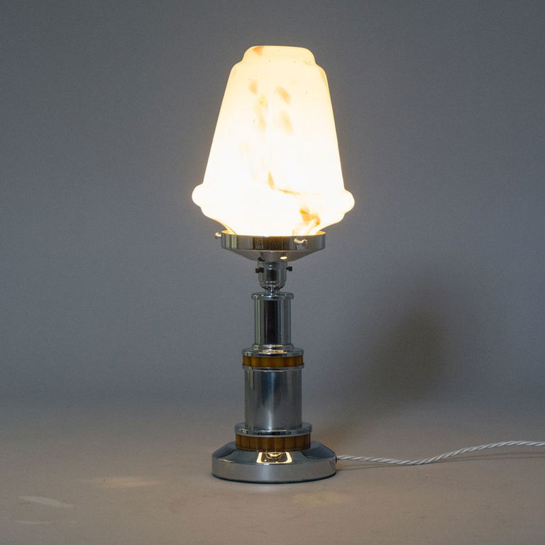 The best feature of this lamp is its geometric, tiered design, which reflects the era’s obsession with clean lines and shapes. The chrome adds a sleek finish, while the Bakelite provides texture and durability. Its compact size makes it easy to incorporate into different interiors, from modern to vintage spaces. The lamp’s well-preserved condition adds to its market value. Collectors appreciate its design and connection to the Art Deco movement.