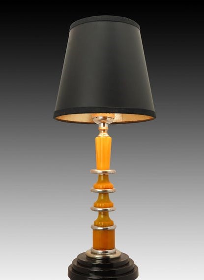 What sets this lamp apart is its combination of Bakelite and chrome, which was often used in the period for its futuristic and bold appeal. The butterscotch Catalin gives the piece warmth, while the chrome provides a sharp, modern touch. The design is clean and geometric, reflecting the era’s obsession with symmetry. The lamp’s compact size allows it to be used in a variety of interior settings. Its condition and authenticity contribute significantly to its high market value.