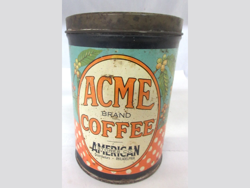Vintage Acme Coffee tins can range in price from $30 to $75, depending on the condition and rarity. The more intricate designs or limited edition versions can drive the price higher.