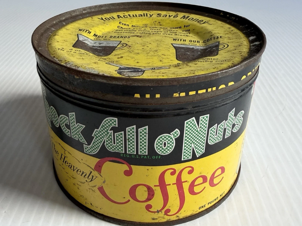 A vintage Chock Full o’ Nuts coffee tin can be valued between $25 and $60, depending on the specific design and condition. Certain rarer versions may fetch even higher prices among collectors.