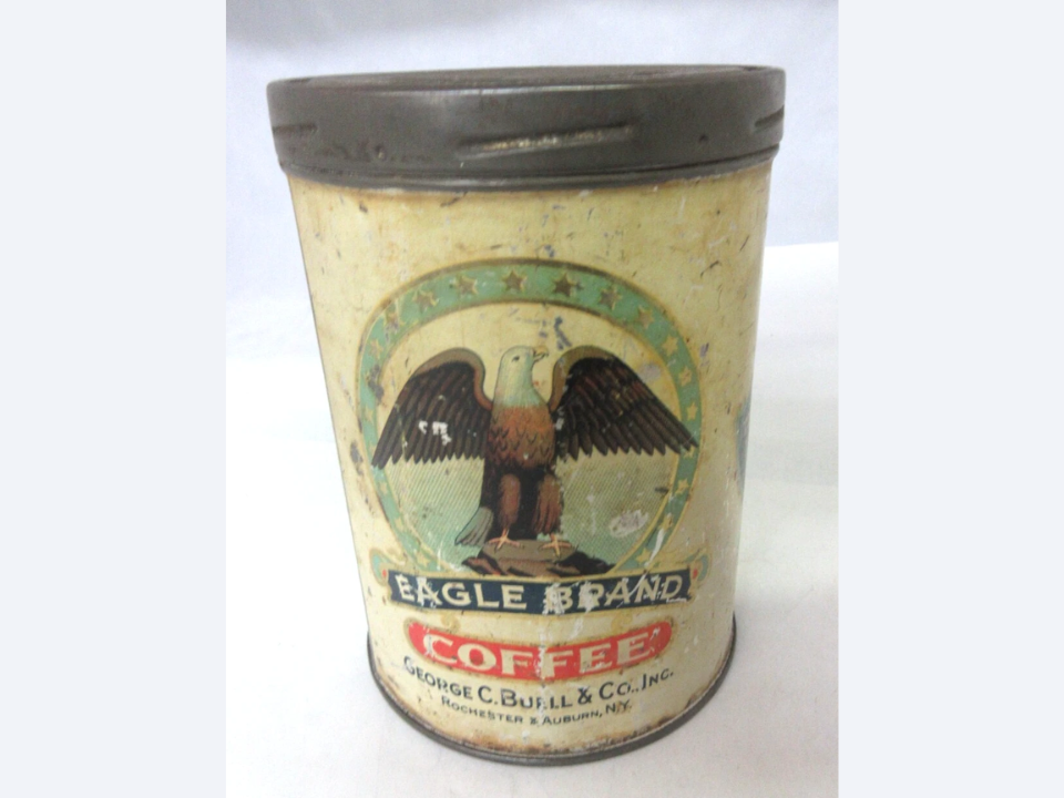 Eagle Brand coffee tins have a long history, and their vintage designs are highly collectible. Known for their bright red and white color scheme, these tins often showcase bold typography and a simple, straightforward design. The brand was one of the earlier players in the American coffee market, making these vintage tins an excellent piece for any collector’s display.