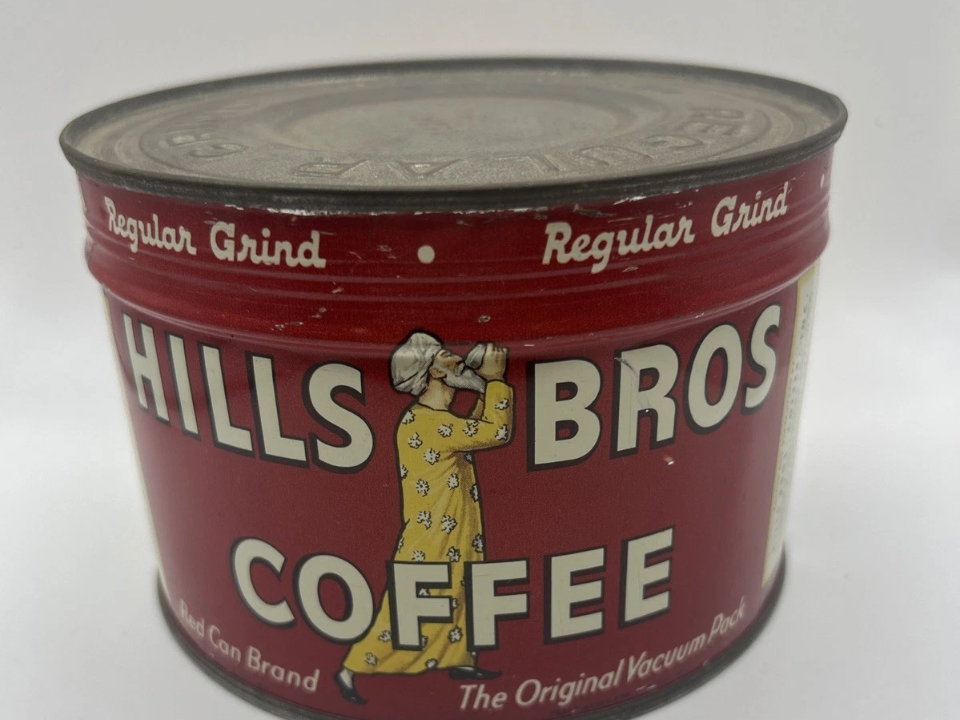 Collectors can find vintage Hills Brothers coffee tins ranging from $20 to $50, with some more pristine examples selling for higher amounts depending on the year and condition.