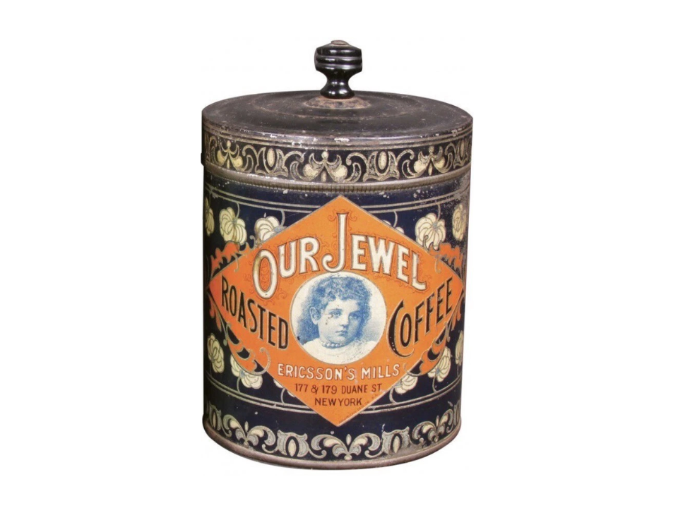 Our Jewel Coffee has long been a popular choice in the U.S., and its vintage coffee tins reflect the mid-century style. These tins often feature a soft red and white design with clean typography. The brand’s simple yet effective design makes it an appealing item for collectors looking to capture the essence of vintage coffee culture.