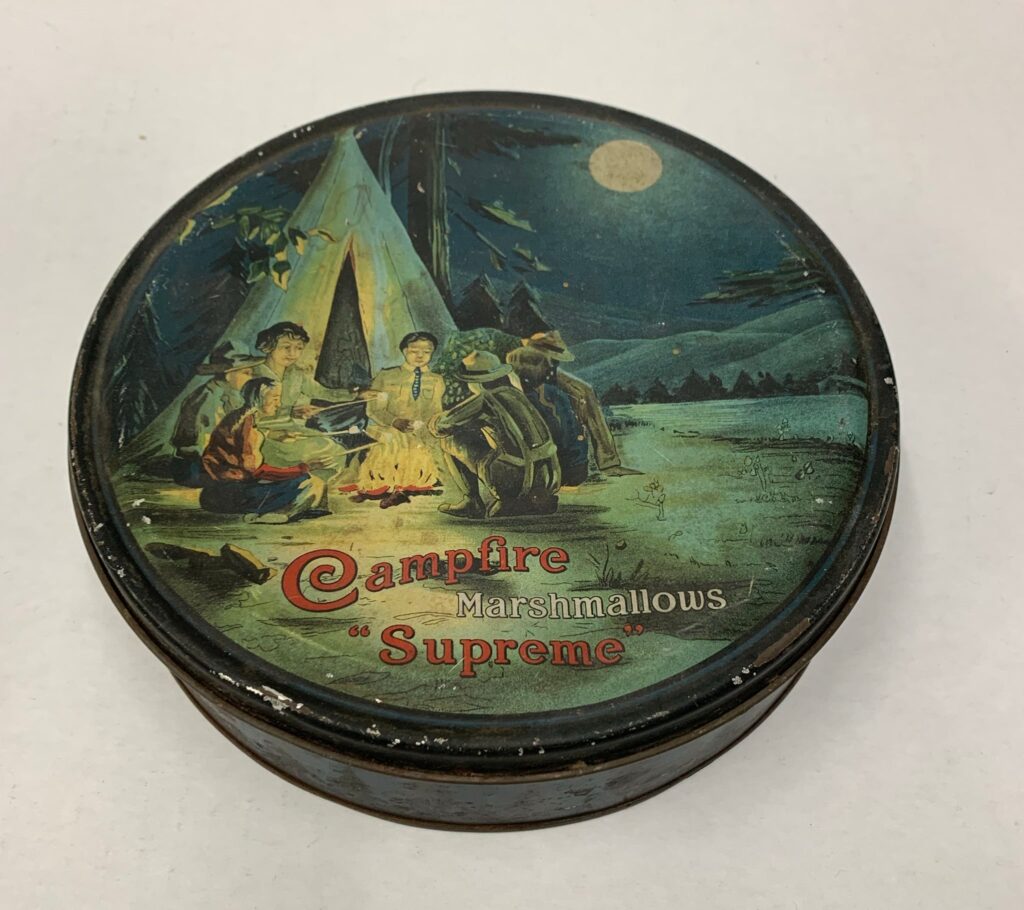 The Campfire Marshmallow tin from 1922 was made to promote marshmallow sales, featuring simple outdoor imagery. The vintage design and soft colors make it an appealing gift box. Depending on condition, it can be valued at $75 to $130. The tin’s compact size makes it great for holding small items or sweet treats. Its durability means it can be passed down through generations.