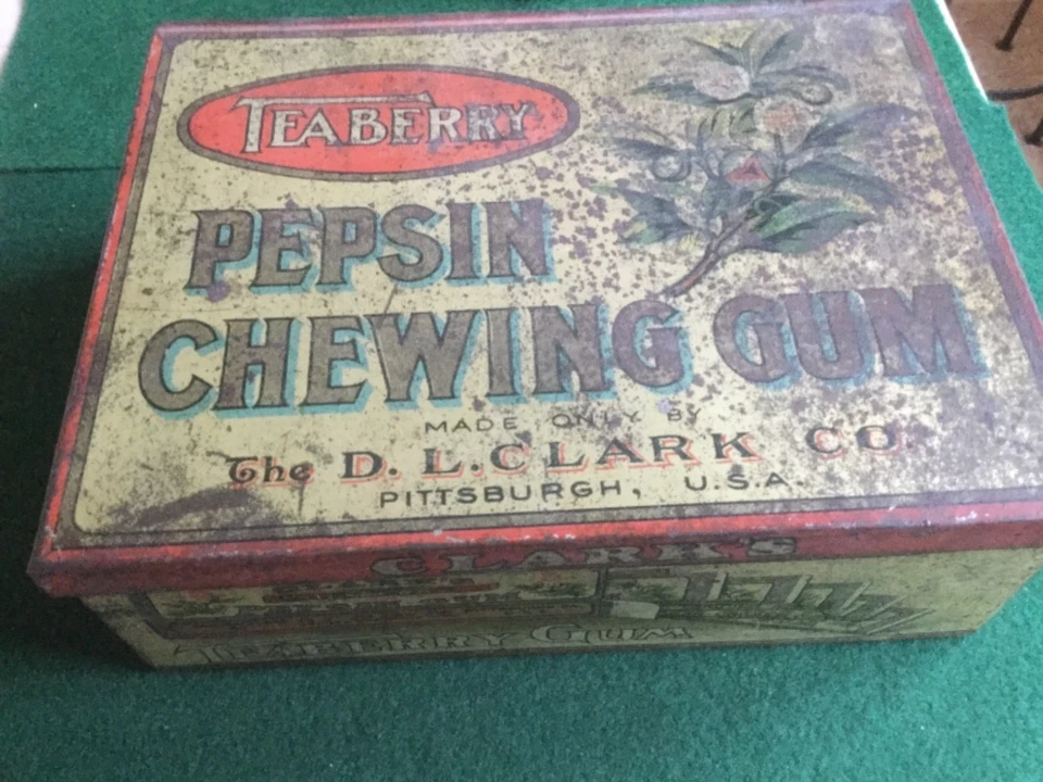 This Clark’s Teaberry Gum tin from the 1940s is a fun and whimsical collectible, featuring the brand’s signature artwork. Originally used for holding gum, it’s now a charming gift box. These tins are often valued between $30 and $70, depending on condition. The size is perfect for holding small treats like cookies or candies. Its bright, retro design brings a cheerful vibe to any occasion.
