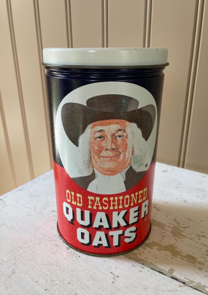 The Quaker Oats tin is cherished by collectors for its nostalgic design and historical value. Its cheerful appearance makes it a great gift box that adds a personal touch to any occasion. Some may find a tin with minor rust spots or fading, but these imperfections only enhance the character. Many choose to give this vintage tin with homemade cookies or treats inside. Its simple, classic design makes it a timeless piece.