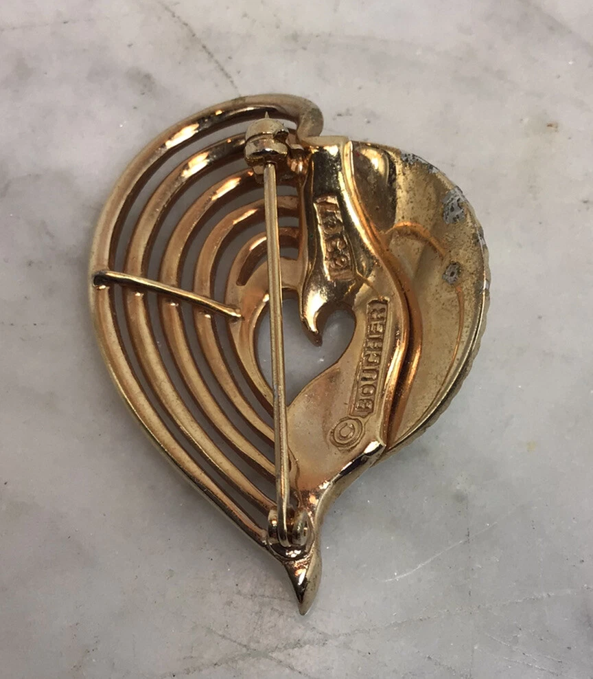 Check the pin back or clasp, since Boucher hardware is often sturdy and well placed. Rhinestones on Boucher pieces can look more refined, and the designs usually feel intentional rather than crowded. Look for even plating and minimal dark spots in the metal, especially around joints. If you find a signed Boucher brooch in good condition, it often looks classy right away.
