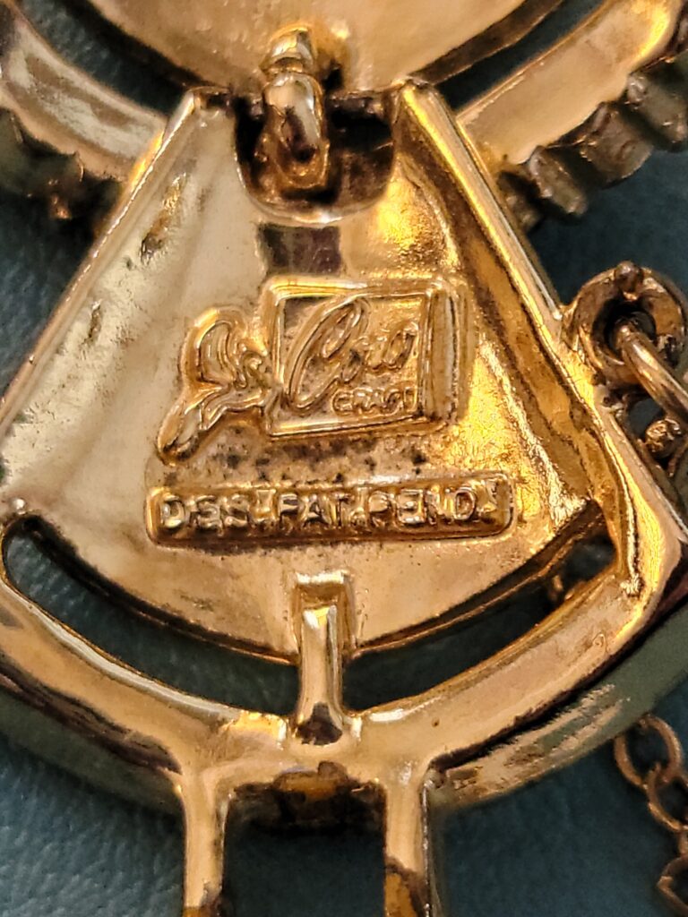 Coro marks can read CORO, COROCRAFT, or CORO Pegasus, and each one can point you toward a different feel and price range. Coro made a huge amount of jewelry, so you will see the mark on everything from simple clip earrings to bigger statement sets. CoroCraft is often treated as a step up, and those pieces can have nicer finishes and more careful details. If you see a Coro signature plus matching design elements across earrings and a necklace, that combo can be a nice clue.